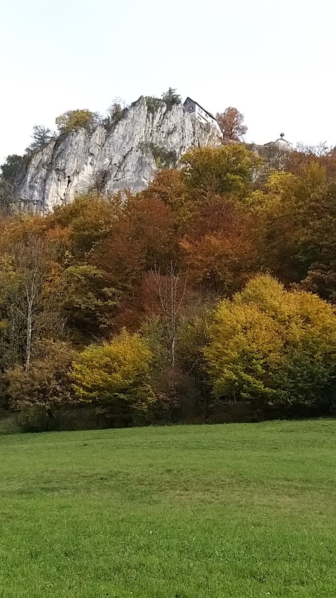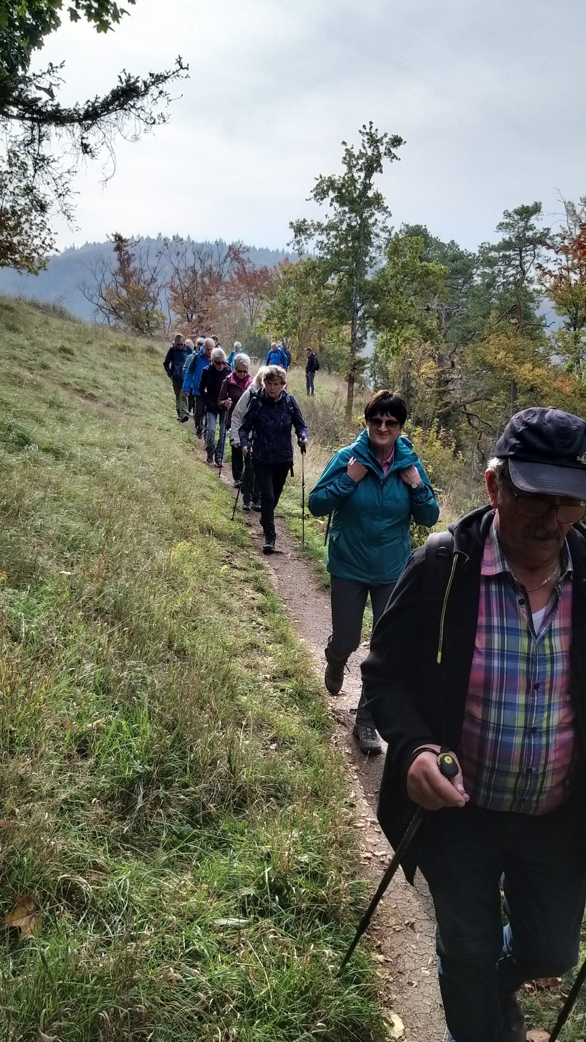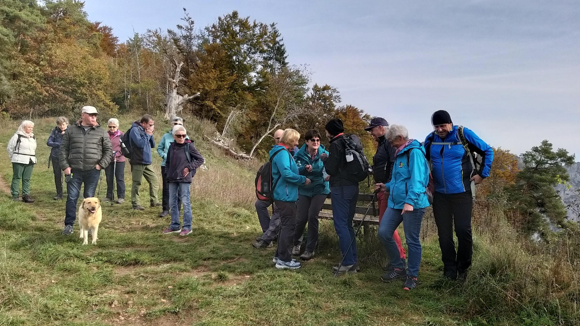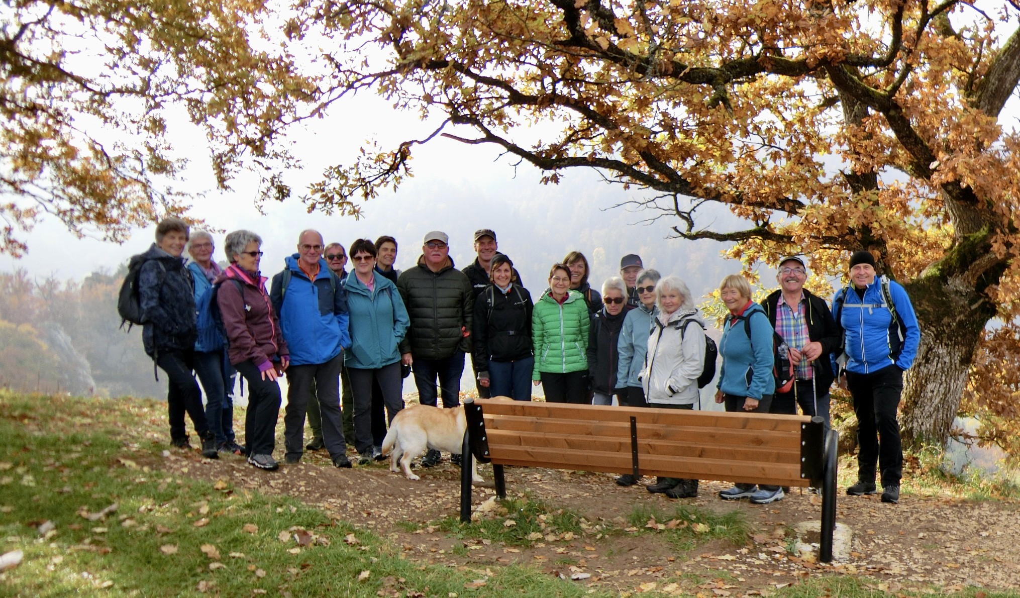 Anders als geplant führte uns die Wanderung am 19. Oktober ins Donautal. In Fahrgemeinschaften fuhren 19 Wanderfreunde zum Knopfmacherfels bei Fridingen, wo unsere Wandertour unter der Führung von Paul Burkowski begann. Zunächst führte er die Wanderer über die Hochebene zur Mattheiser Kapelle und weiter an den schönen Aussichtspunkten Stiegelesfels und Laibfelsen vorbei, wo die schöne herbstliche Aussicht genossen wurde. Danach begann der Abstieg ins Tal hinab, über die Brücke der schönen Donau zur Ziegelhütte. Dort legten die Wanderer ihre Mittagsrast ein. An den Automaten konnten Getränke und Kaffee erworben werden als Ergänzung zu unserem Rucksackvesper.