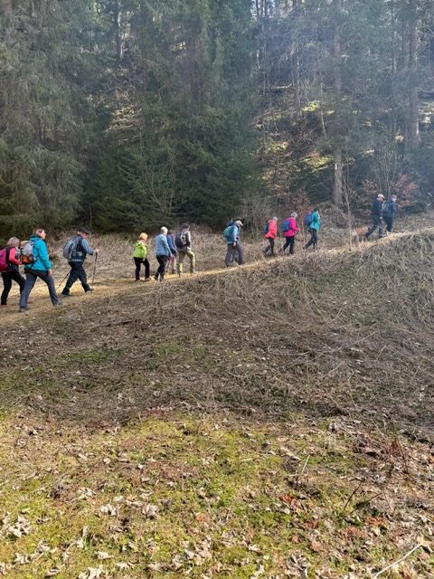 Am 8. März um 11.00 Uhr starteten 17 Wanderer mit den privaten PKWs nach Böttingen. Am Ortsausgang war der Start. Auf zwei verschiedenen Wegen, je nach Kondition ging es zunächst bis zum Schäferbrunnen, dann weiter über den Allenspacher Hof, vorbei an der jahrhundertalten Linde bis zur Lippachmühle. Von dort ging es weiter entlang des Lippachtals Richtung Mühlheim.
